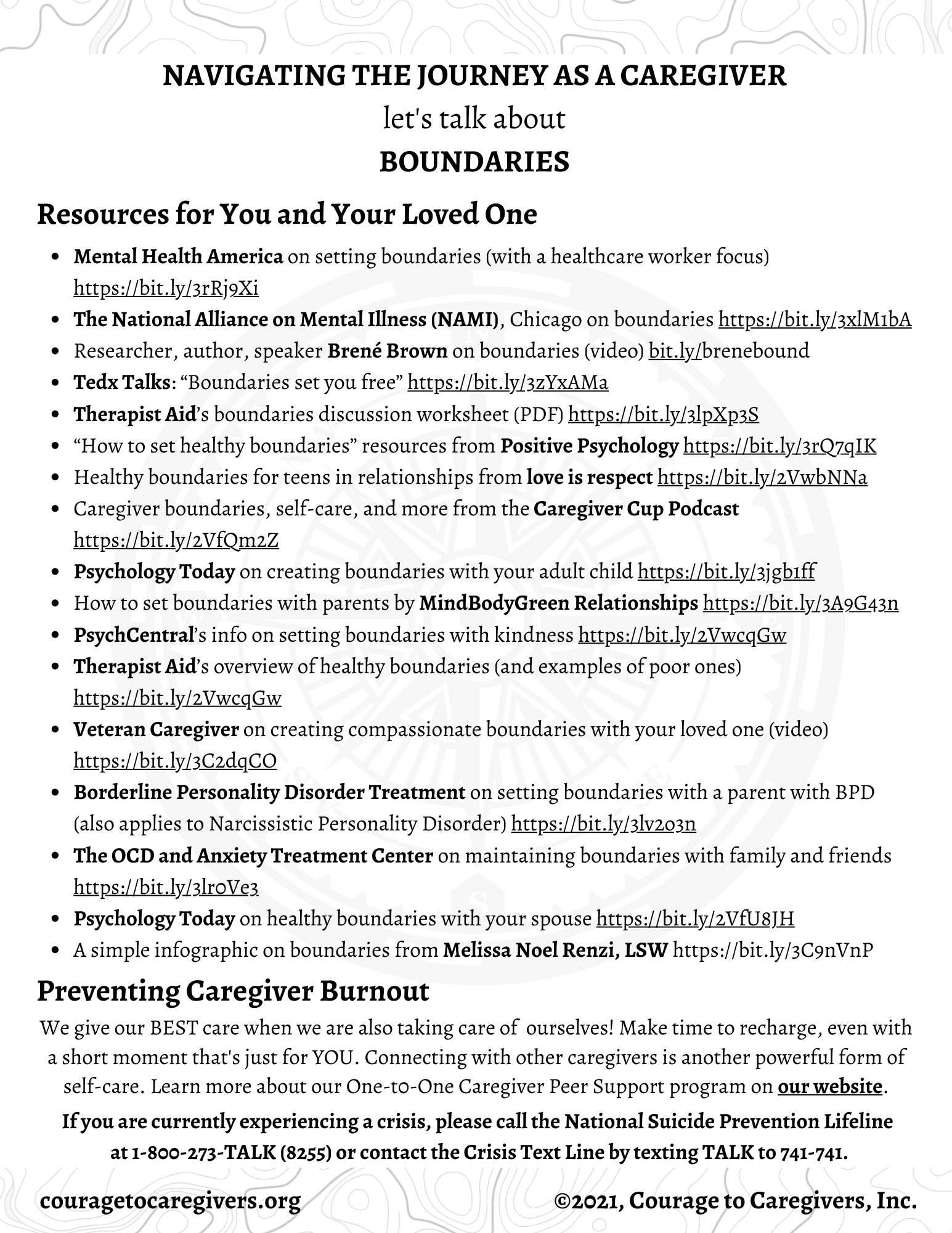 Download Courage to Caregivers’ One-Page Resource for the caregiver skill of Boundaries here.